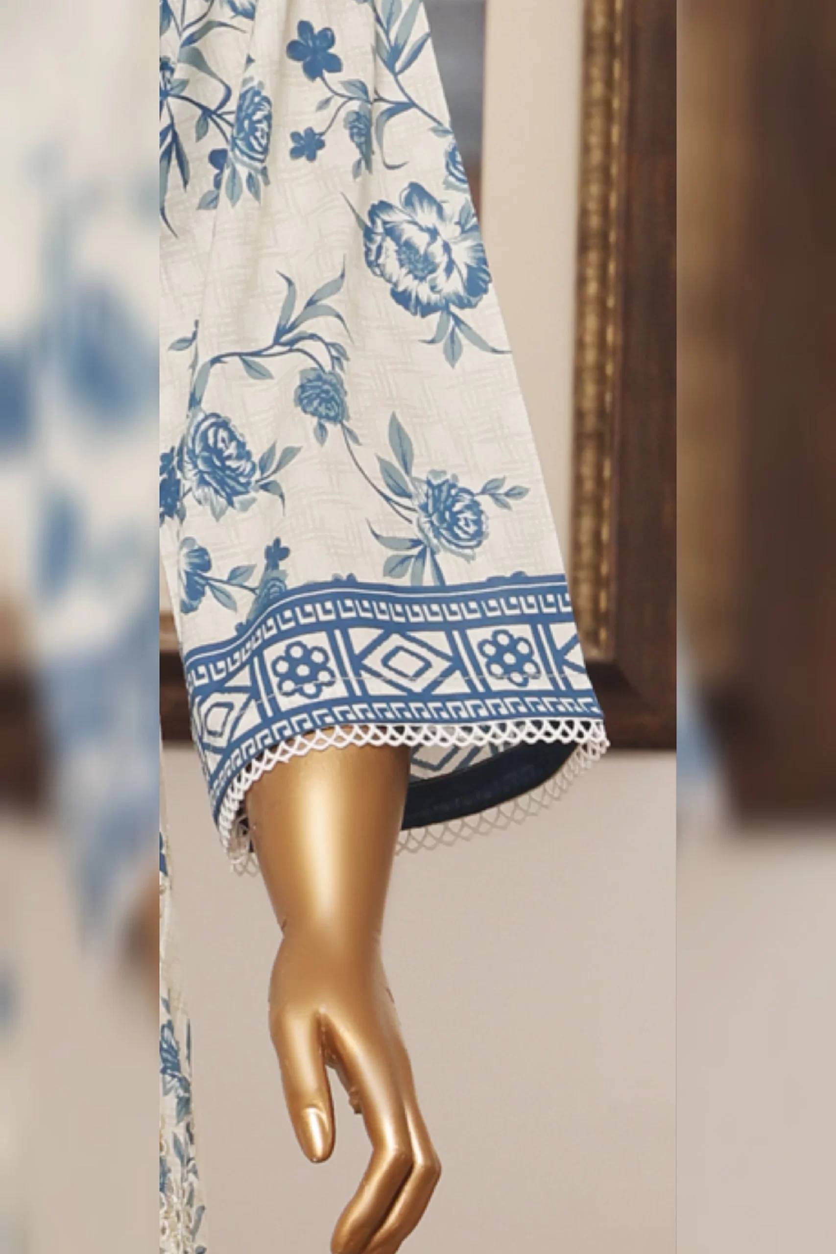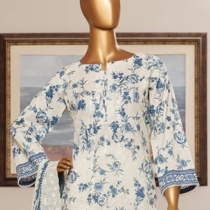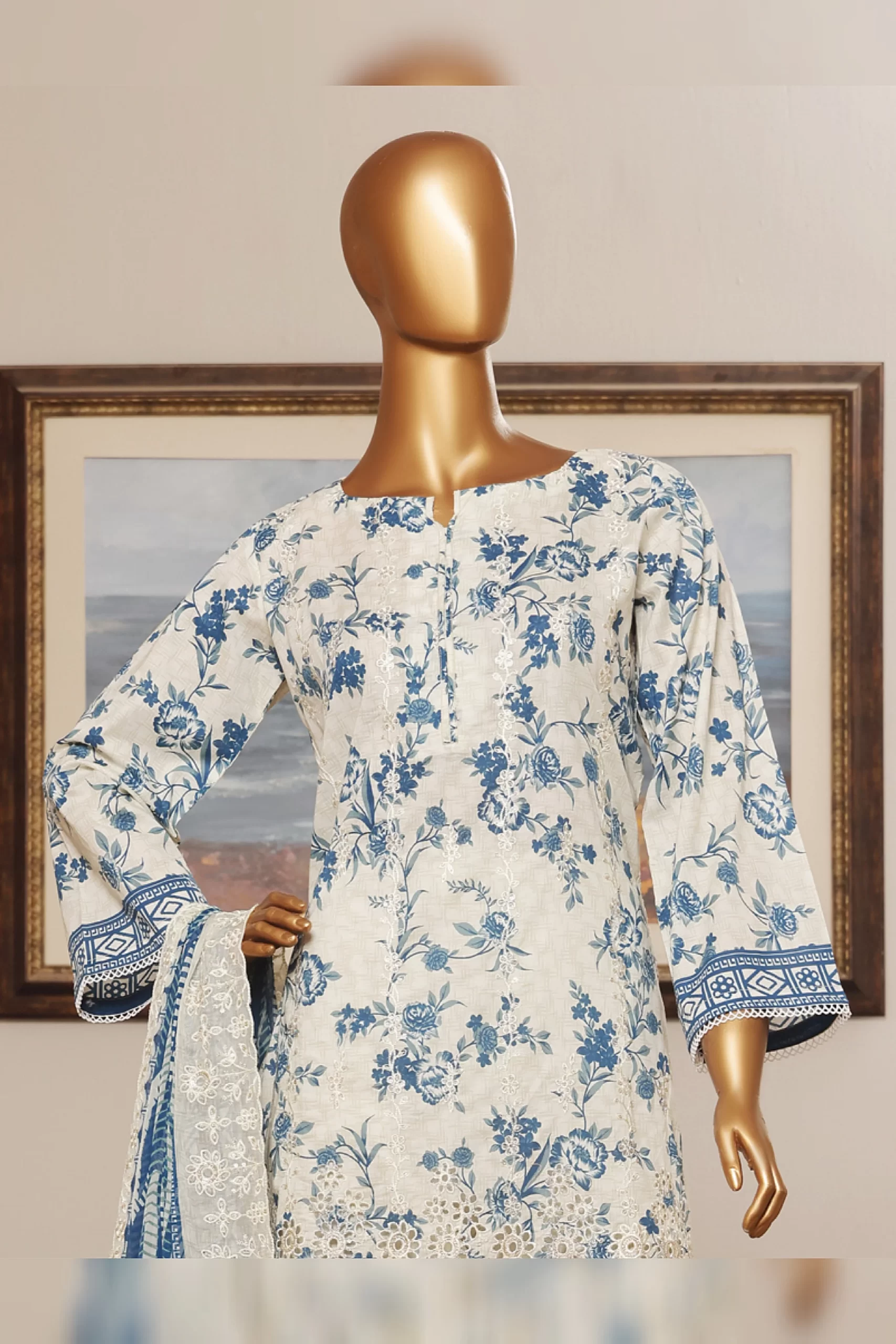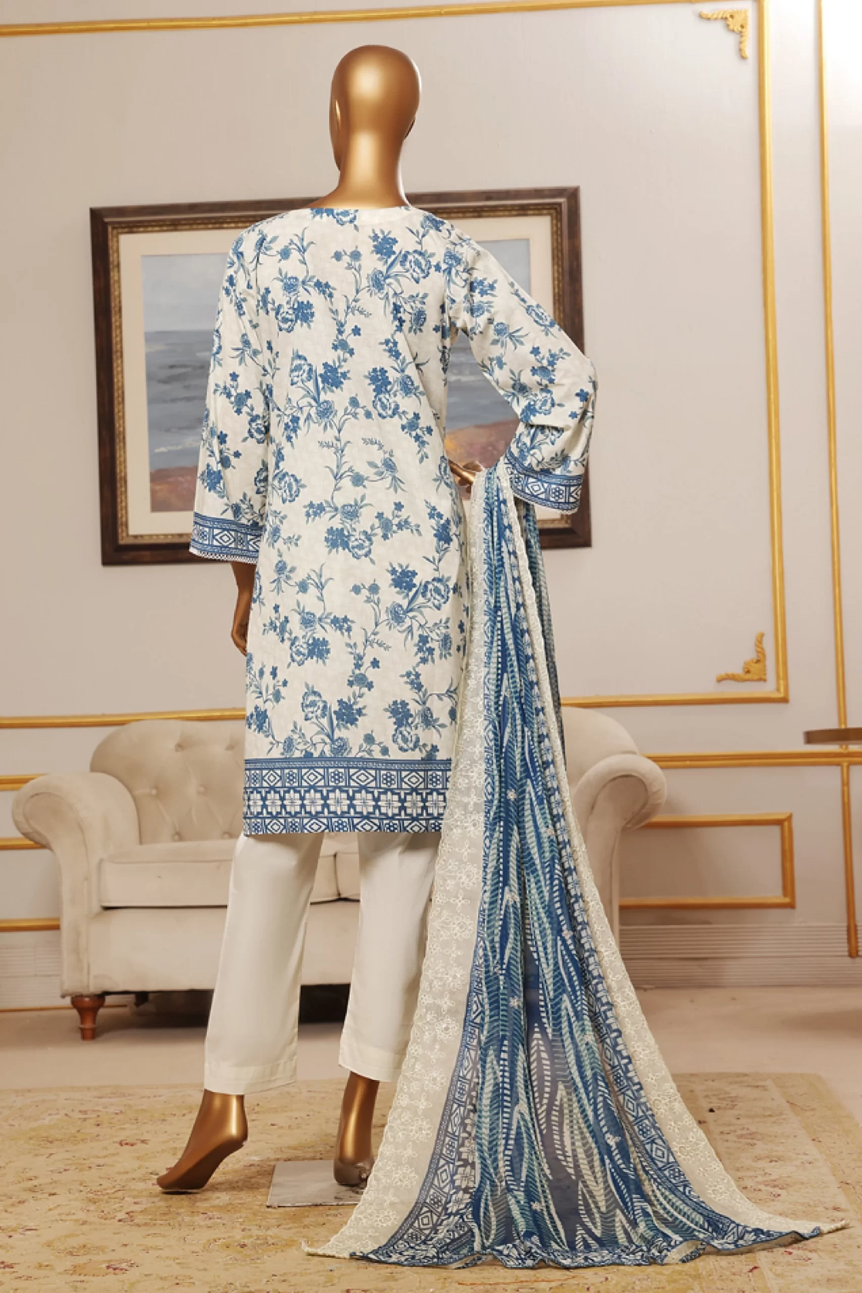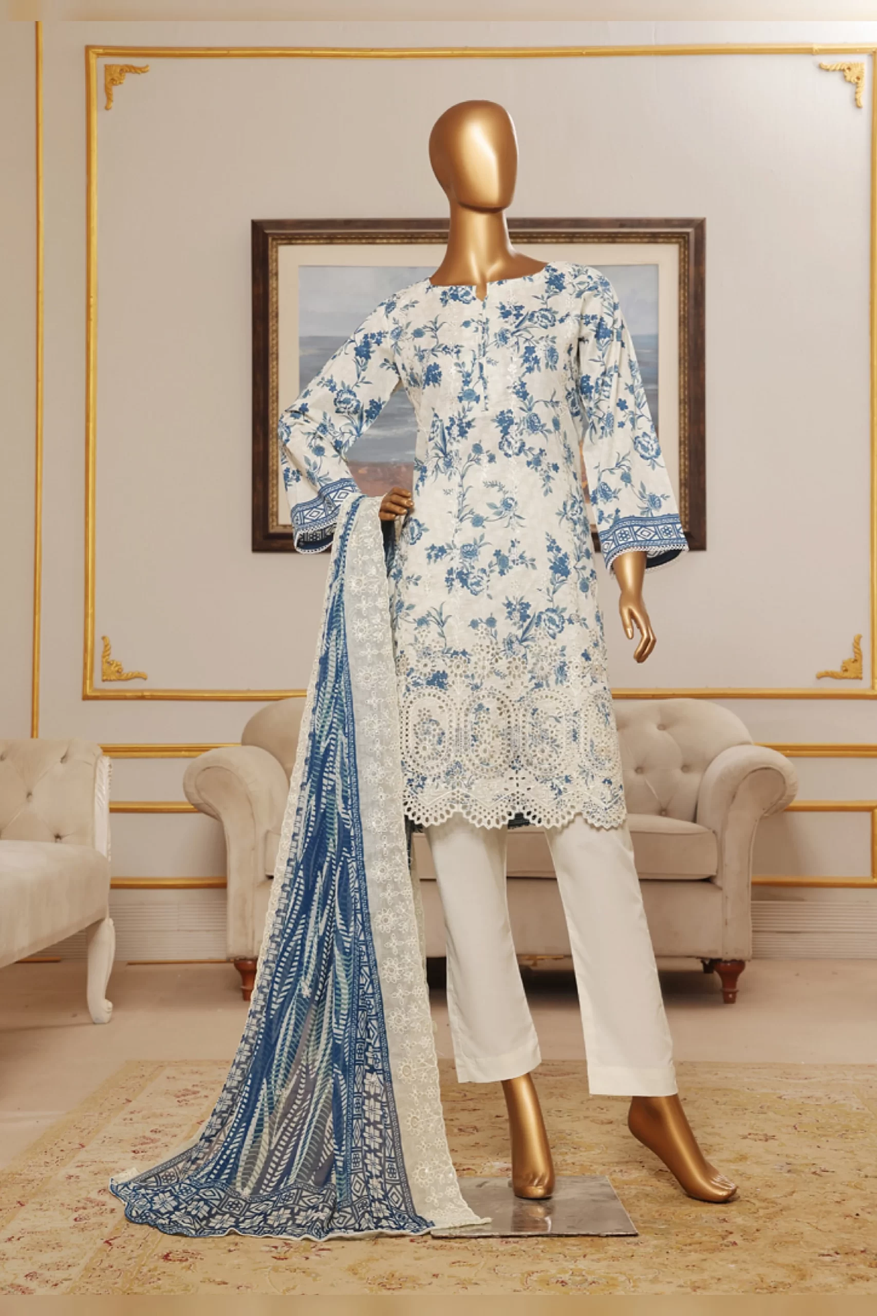 Serene Cerulean Blue Embroidered Lawn Suit with Chiffon Dupatta