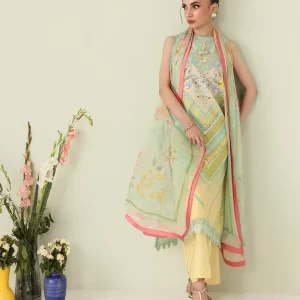 Joyful Mustard Yellow Printed Lawn Suit with Embroidered Details and Chiffon Dupatta