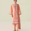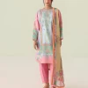 Elegant Beige Printed Lawn Suit with Pink Ombré Chiffon Dupatta
