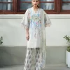 Elegant White Embroidered Cotton Suit with Floral Silk Dupatta