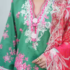 Tranquil Aqua Marine Printed Lawn Suit with Embroidered Details and Chiffon Dupatta