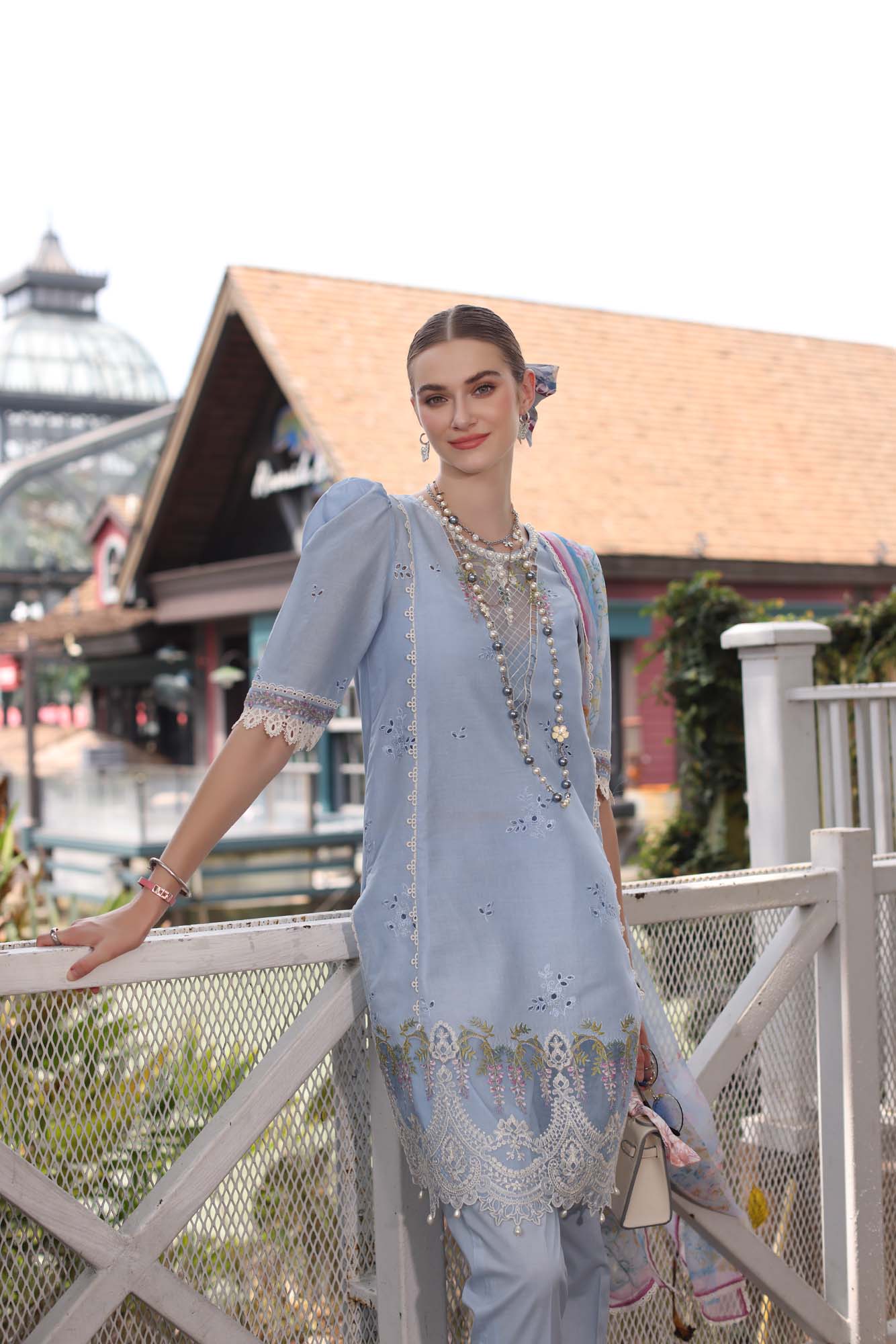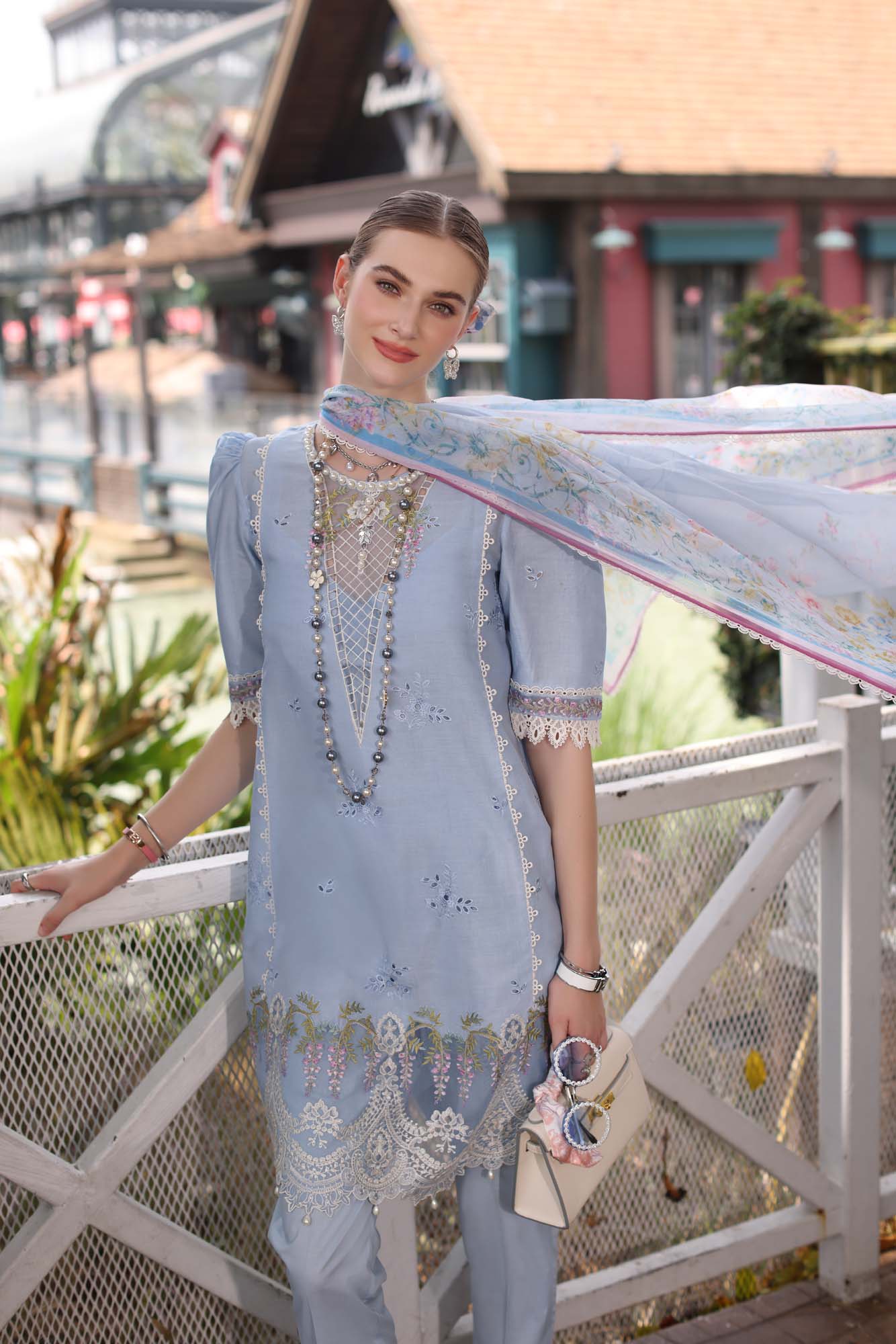 The dyed cambric trouser is soft, smooth, and tailored for everyday comfort, while the digitally printed chiffon dupatta brings in movement, pattern, and flair with its sheer flow and airy feel—ideal for the summer season.