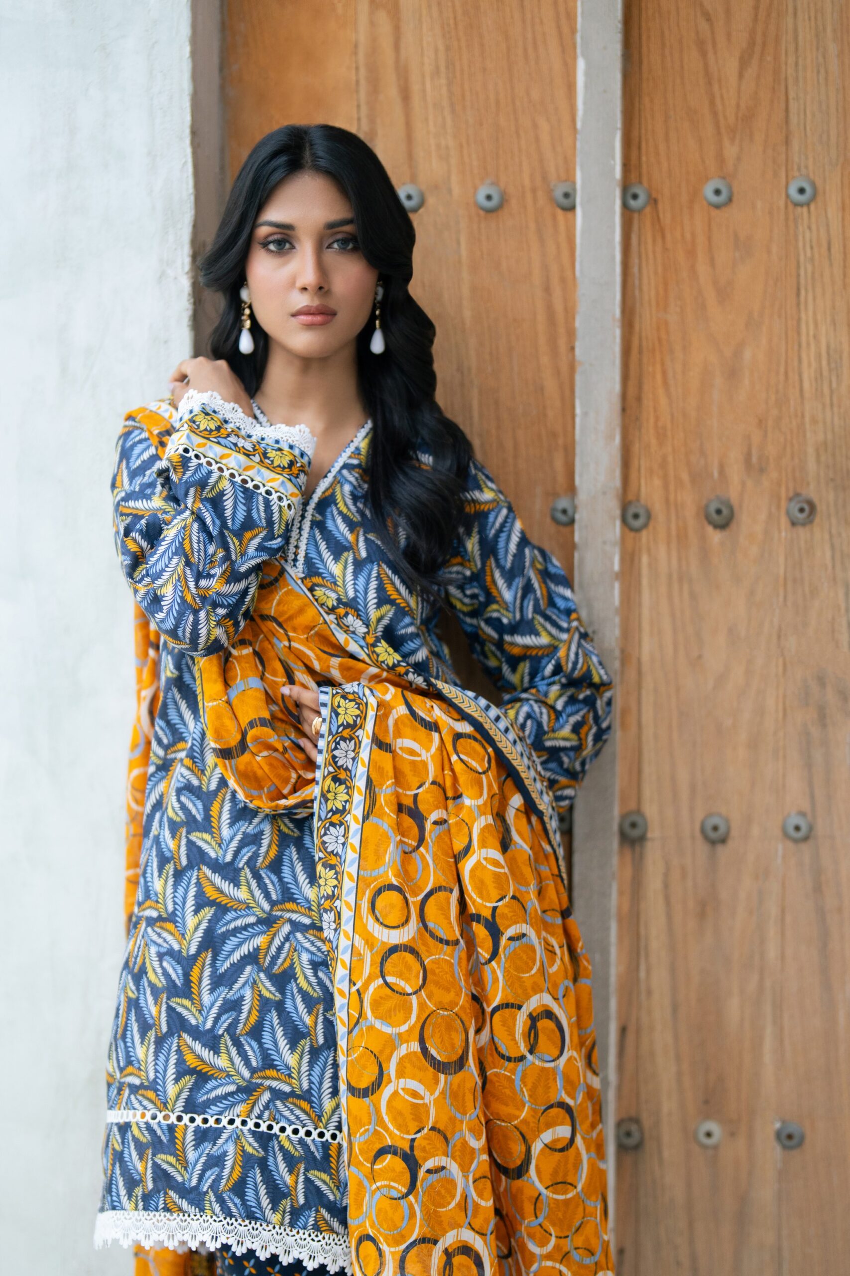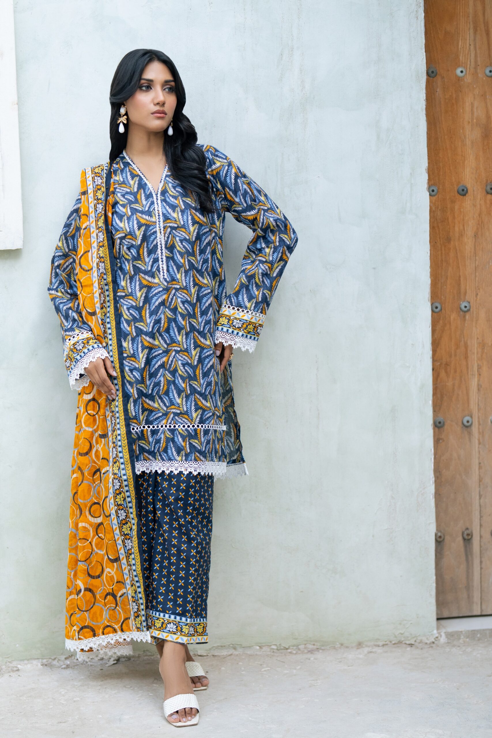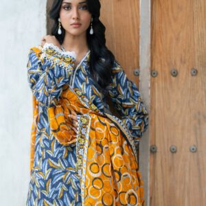 Joyful Mustard Yellow Printed Lawn Suit with Embroidered Details and Chiffon Dupatta