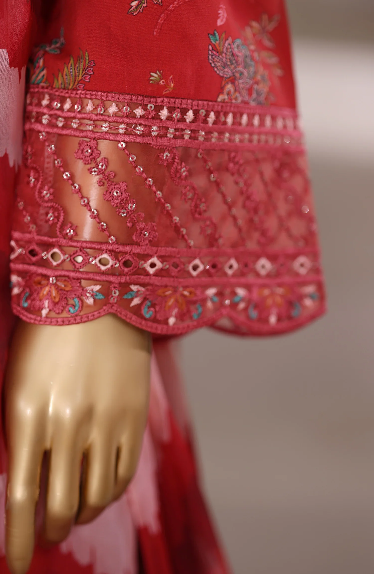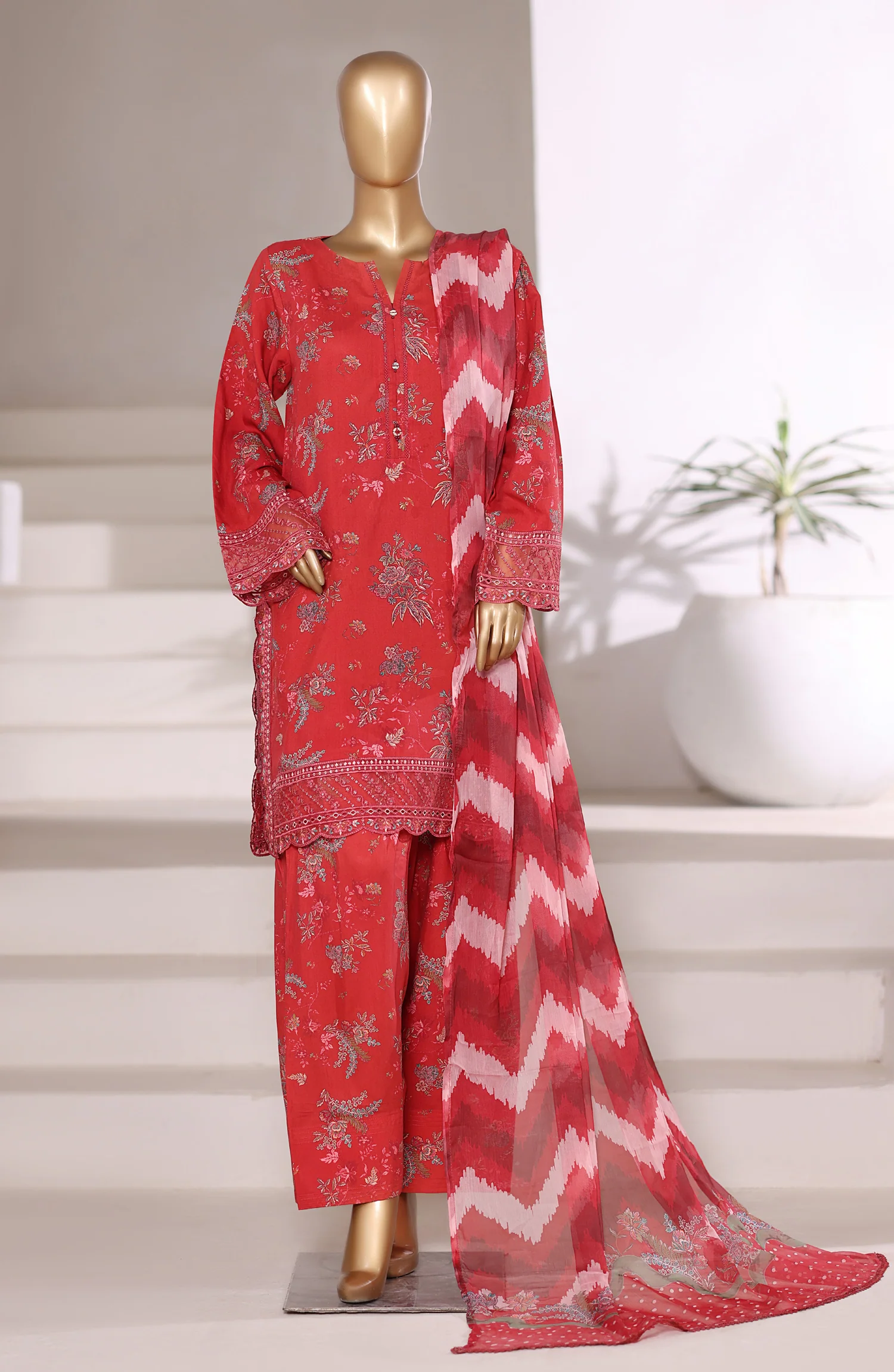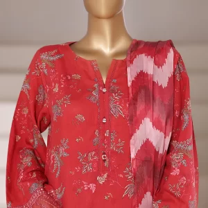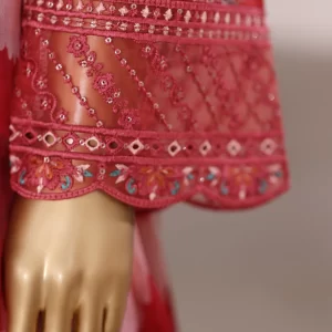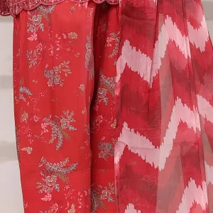 Viscose linen – Stitched Embroidered 3piece with Farshi shalwar – Red