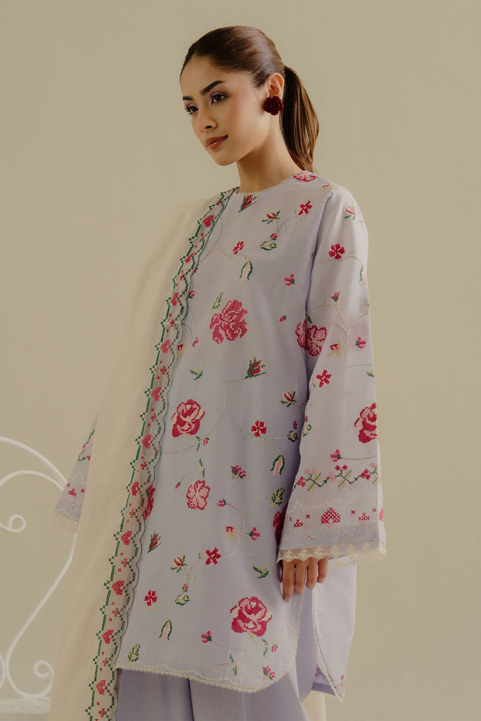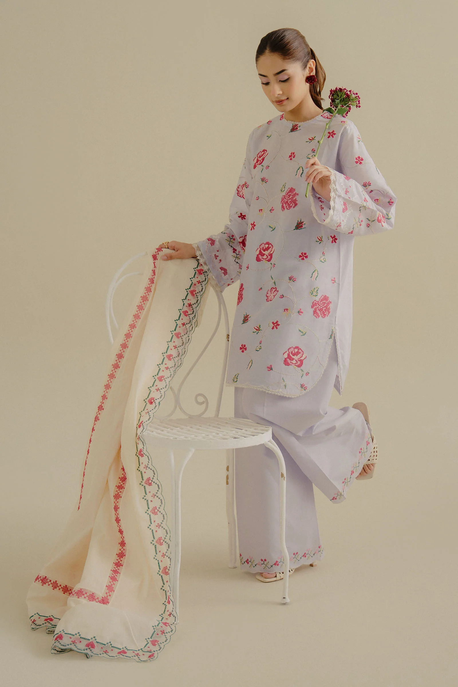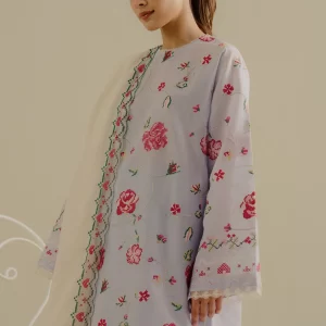 A Lilac Summer Lawn, featuring floral embroidery and a self-jacquard dupatta, exudes a fresh, feminine charm with every detail.