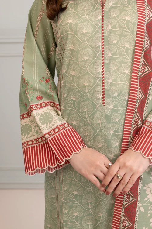 Light Green Embroidered Cotton Suit with Geometric Silk Dupatta
