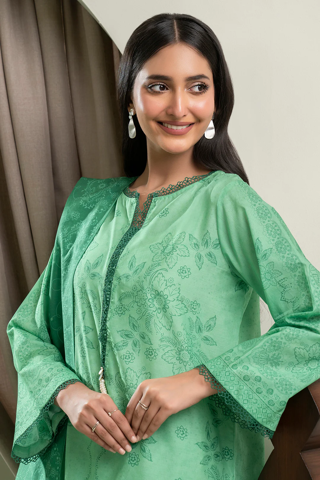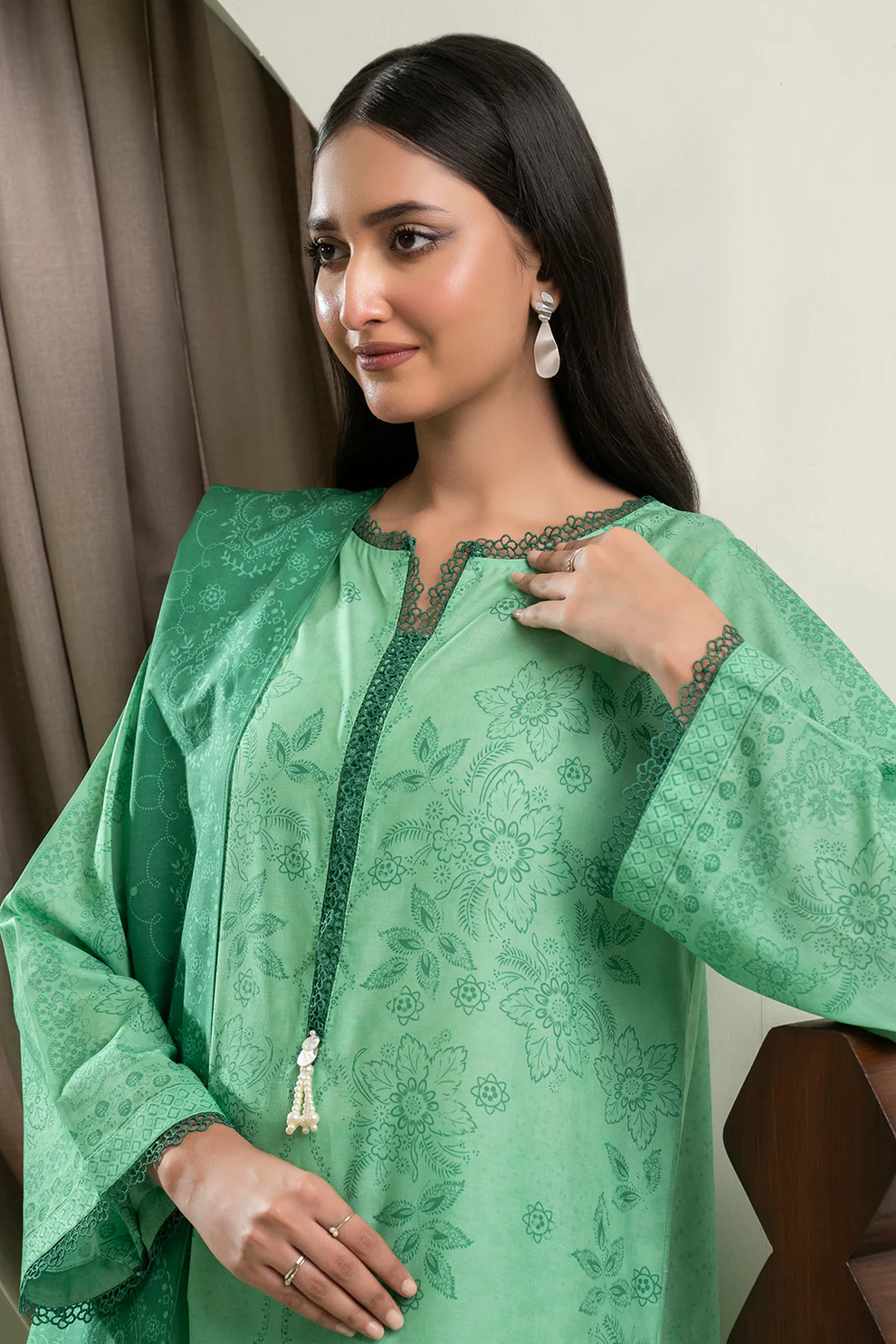 Zellbury Lawn Collection 2025 – 3-Piece Unstitched Printed Suit – WUS25X30519 Green